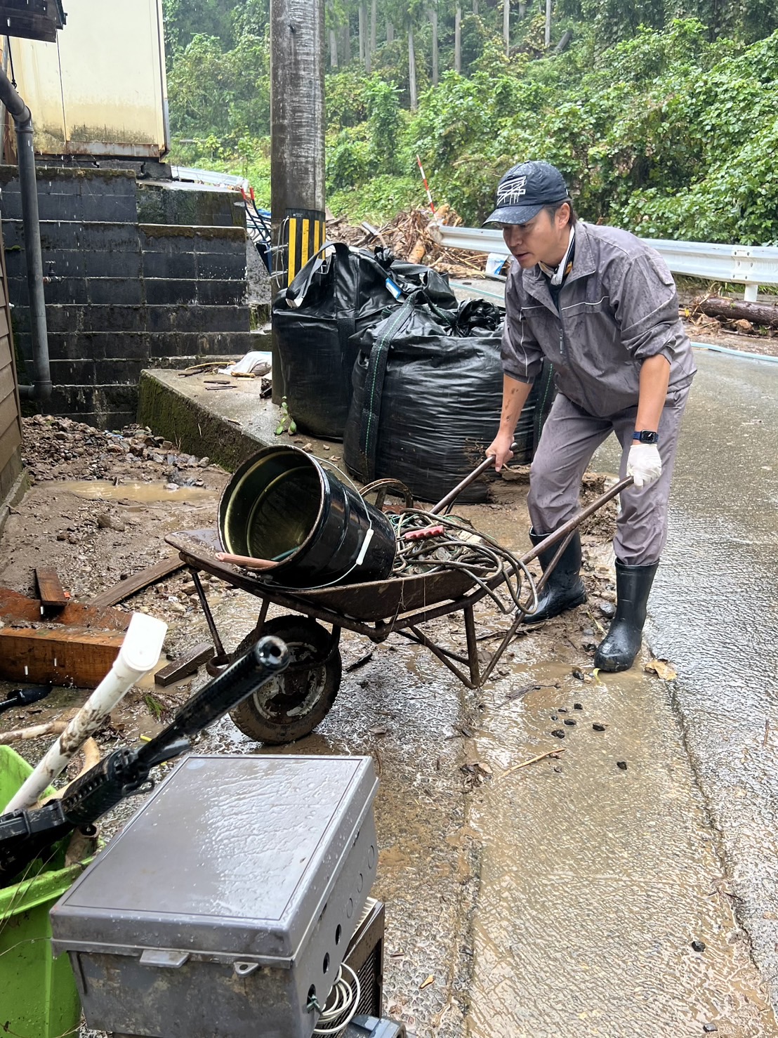 このたびの能登半島豪雨では多くの繊維関連企業も被害を受けました。明林繊維の協力工場もその一つで、震災からようやく復旧し生産が再開した矢先の被災となり、関係者の精神的なショックも大きいものでしたが、幸いにも人的被害はなく安堵しております。明林繊維では、社員らが瓦礫や土砂の撤去作業をお手伝いし、物資や支援金の寄付を行いました。今後も支援を継続するとともに、被災地の一日も早い復興を心より願っております。